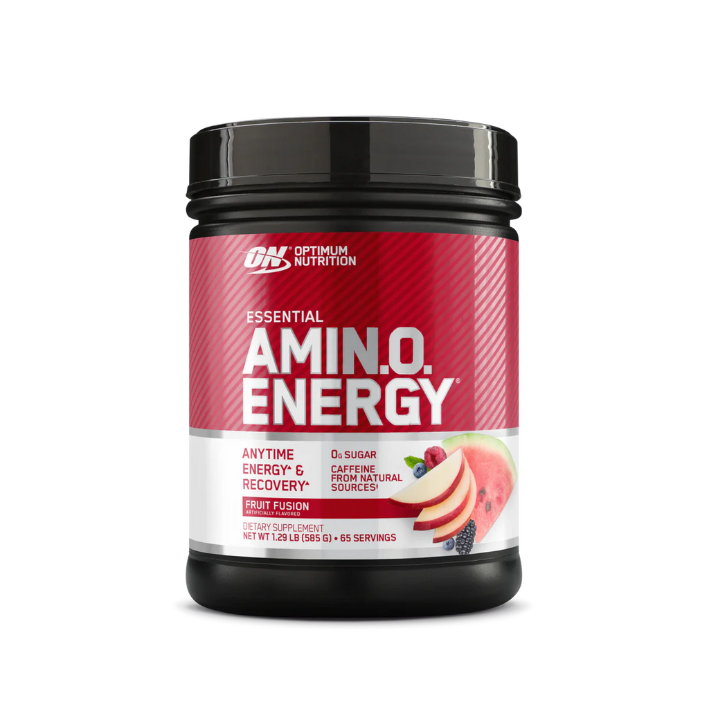Mix up ESSENTIAL AMIN.O. ENERGY anytime you want a boost of energy, focus and muscle recovery support. Each serving provides 100 mg of caffeine from natural sources to support energy and focus along with 5 grams of amino acids for muscle support.