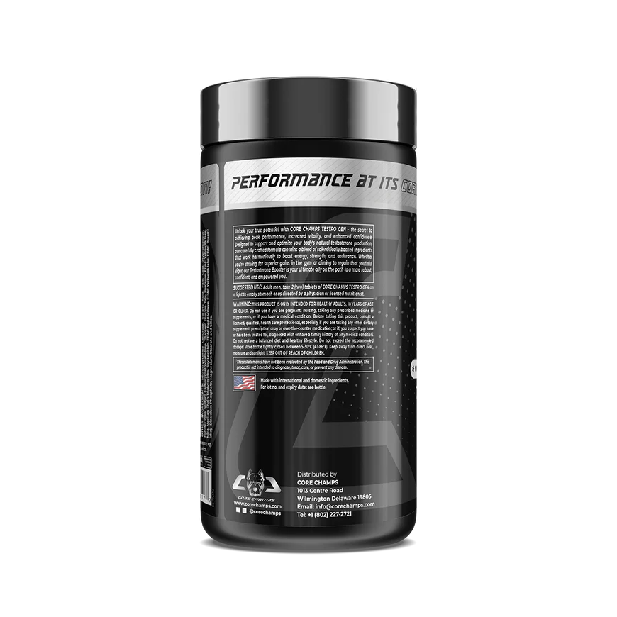 CORE CHAMPS Testro Gen combines real science with best-in-class ingredients and precise doses to deliver optimum results. Testro Gen leads to healthy testosterone levels. Its highly innovative formula has been shown to boost free testosterone levels with normal estrogen ratios.