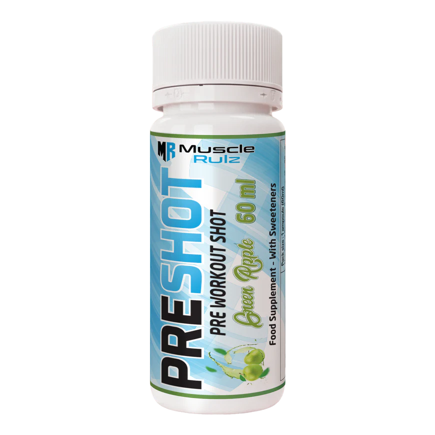 Muscle Rulz PRE SHOT is a compact, ready-to-drink pre-workout shot made for athletes who want fast performance support without the hassle of powders. Its formula supports energy, endurance, focus, and training intensity, making it suitable for strength workouts, cardio, HIIT, and sports training.